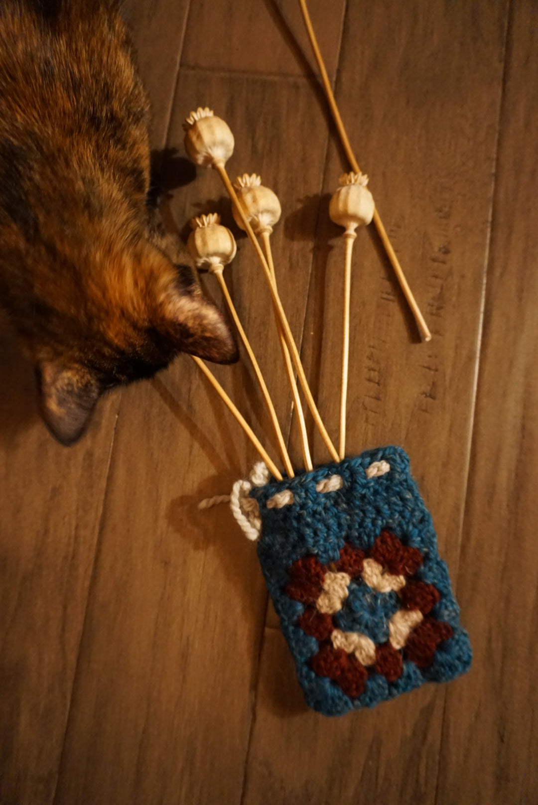 Using scrap yarn I've created an assortment of granny squares and turned this matching set into an unlined pouch. Still debating if I would like to line them with scrap fabrics or leave only as the crochet piece. Reach out if you would like this as they are still in concept.